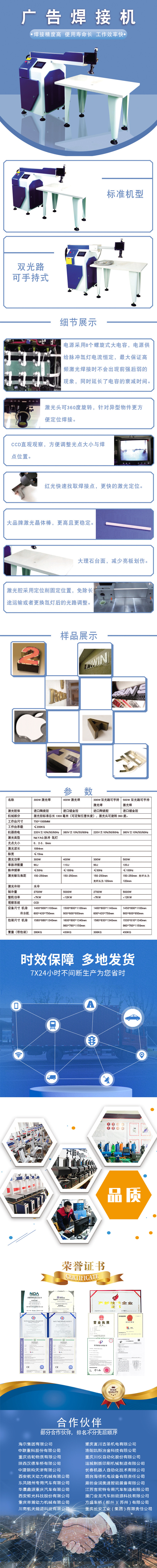 广告字焊接机也叫广告字激光焊接机,主要是通过激光热熔焊接,焊缝美观,应用于各种不锈钢字,LED发光字,LOGO标识,标牌,广告字等产品的快速精密焊接。