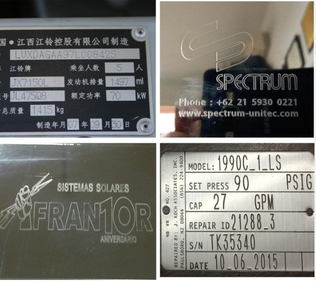 初刻智能机械设备有限公司铭牌气动打标机是一款专门针对铭牌打标的设备,该设备在台式气动打标机的基础上加装手动或气动铭牌夹具,通过夹具给铭牌定位,免去铭牌左右滑动的困扰,达到标记美观的效果。