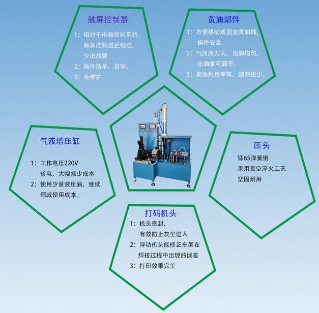 五位一体气动打标机可以打标,可以加黄油,可以压钢碗,一体机价格68000元。