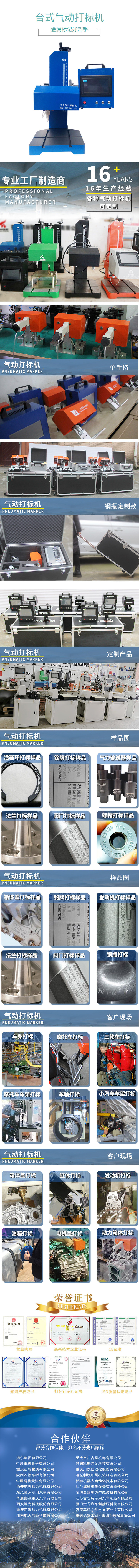 气动打标机是计算机控制打印针在X、Y二维平面内按一定轨迹运动的同时,打印针在压缩空气作用下气动气动打标机主要特点:有较大深度,通过电脑直接打标输出,标记工整清晰;主要典型应用:汽摩零部件、仪器仪表,机械、汽车、标牌等行业。