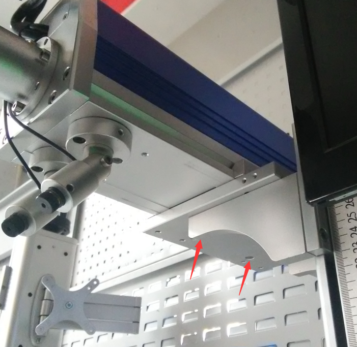 2. 将激光镜安装到升降台上,固定好螺丝;