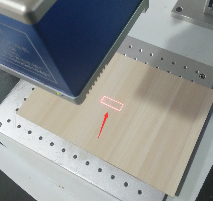 3) 在软件中点击“红光”,工作台上会出现红色的外框指示打印内容的大小和位置,放置平面材料到合适位置,如图