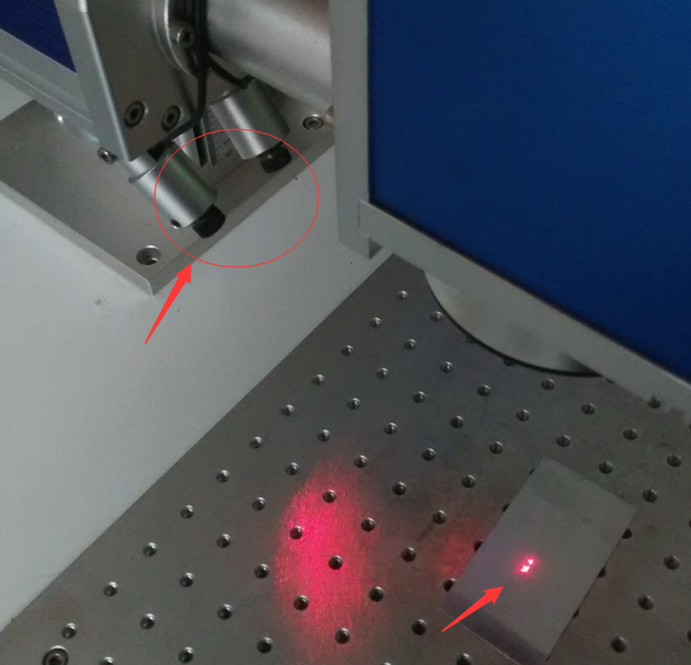 6) 调节完毕后,在其他水平高度上打标只需调节升降台,将红外对焦系统的两个点在新高度平面上调节到一起即可。