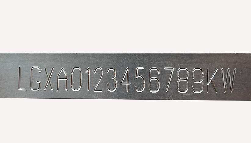 目前大多数汽车行业制造商还在使用点针式打码机,因为气缸作用力不均匀,特别容易导致VIN码字符的深度不均匀,出现毛刺以及深度达不到相应的技术要求,从而造成VIN码不合格,最终影响车辆出厂检测,甚至影响注册上牌。并且点针式打码机有一个缺点,是噪音比较严重,不过相对来说,一台点阵式气动打标机价格也较为便宜,如果对打标深度、噪音没有特别要求,是较为适宜的。
